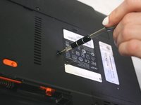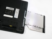 Remove the black screw holding the optical drive in place by using a Phillips #0 screwdriver.