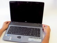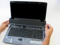 Orient the laptop so that the hinges between the LCD module and the laptop's bottom base are visible.