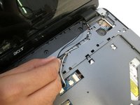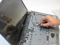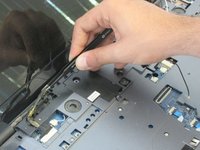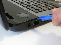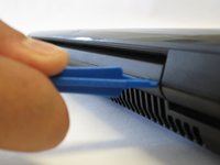 Use the plastic opening tools to separate the speaker panel from the laptop.
