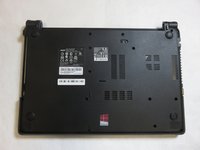 Flip the laptop over so the bottom is facing you.