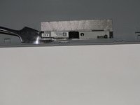 Lay the screen flat on the table. There should still be two wires on each side in or around the hinges that go from the top portion to the base.