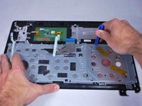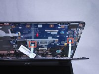 Rotate the back cover up a little to reveal the cables connected to the motherboard.