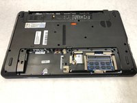 Remove the access panel to expose the hard drive, WiFi chip, and RAM modules.