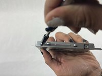 Use a Phillips #0 screwdriver to remove the two 2 mm screws (one on each side) attaching the hard disk to the hard disk tray.