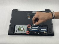 Remove the two 8 mm Phillips #0 screws holding the Hard Disk tray.