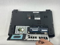 While holding this switch open, use your other hand to slide the battery out from the back of the laptop.