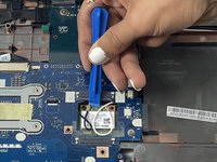 Use a plastic spudger to pry the speakers free from the laptop case.