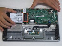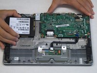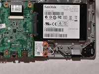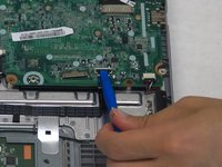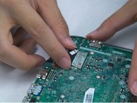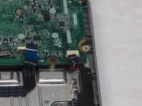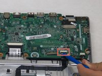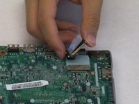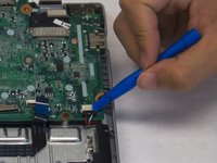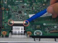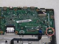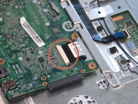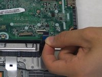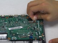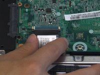 Peel up the tape adhering the display cable to the connector on the motherboard.