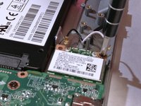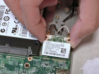 Remove the two antenna cables from the wireless card. These should snap lightly out of place when lifted upwards.