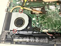 Remove the two 2 mm screws holding the fan to the motherboard using Phillips #00 screwdriver.