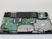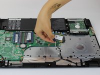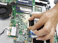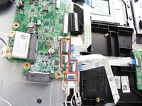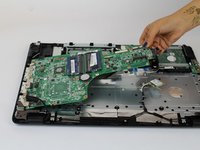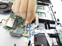 Finally lift motherboard from narrow side and jiggle it out so all ports going through the laptop case on the left slide out.