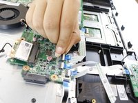 Lift the motherboard up from the narrow side and jiggle slightly so that way it doesn't get caught on the ports of the laptop case.