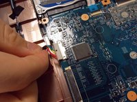 Remove the wired connection to the laptop by pulling the plug out of the motherboard.