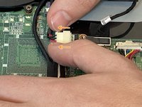 Gently grab the battery jack cable and remove it from the laptop’s motherboard.