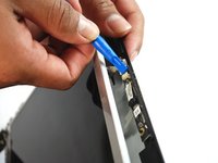 Using the plastic opening tool, gently lift the screen up from the back of the plastic laptop cover.