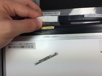 On the bottom left of the screen there is a cord attached. Remove the tape that is attached to the screen.