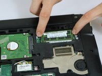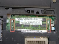 Using two fingers, push the clamps away from the RAM chip, releasing it from the motherboard.