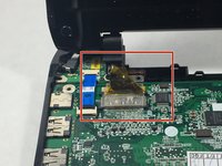 Remove the screw Phillips #0 (M2-L3 mm) holding down the network card. Pull out the card.