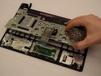 Remove the larger black ribbon cable by pressing in the tabs and sliding it straight out of the clamp holding it in using a plastic spudger.