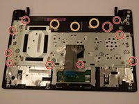 Locate the ten 6 mm Phillips screws that connect the keyboard to the rest of the laptop and remove them with a Phillips #0 Screwdriver.
