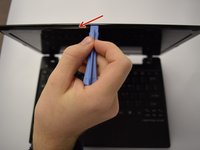 Firmly slide spudger around the edge of the entire laptop to remove the front plate of the screen.