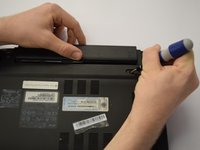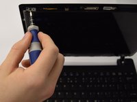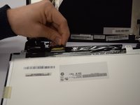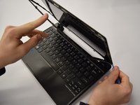 Pull away the LCD screen from the back cover of the laptop without ripping the ribbon cable connecting it to the bottom of the laptop.