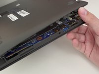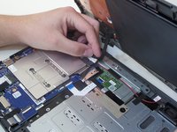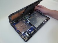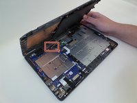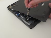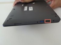 Hold the back panel away from the laptop and remove the 4-mm screw using the PH0 screwdriver.