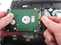 Locate the two 4 mm Philips #1 screws holding the hard drive into its bracket.