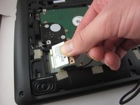 Remove the 4mm Phillips #1 screw holding the WLAN card holding it in place.