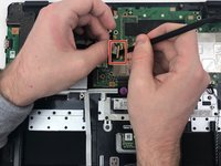 Gently and cautiously pinch the white ends of the battery connector cable and slowly pull it from the motherboard.