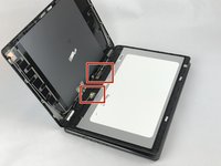 Remove the tape covering the connector cables once the screen is separated from the display board.