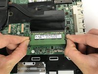 Two clips secure the RAM module in place, one on each side. Using your fingers, spread the clips away from the RAM module.