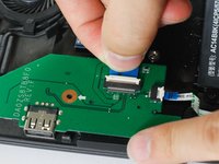 Push the white panel upwards to unlock the cable and then remove the cable.