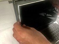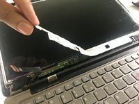 On the bottom left of the screen there is a black cable with a piece of white tape over it. Remove the white tape by peeling it off.