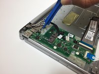 Carefully unplug the two board cables from their connectors by pulling on them.