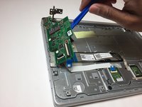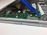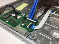 Carefully unplug the larger ribbon cable by pulling on its blue tab.