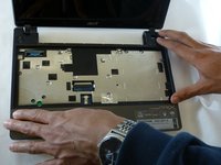 Turn your laptop over, and find the laptop battery release button locks for your Acer laptop.