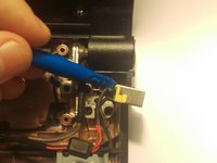 Once the block is loose, use the spudger to unhook the wires from their guides.