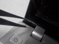 Turn the laptop upside down to locate the battery at the top of the laptop.