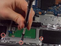 Remove the three visible screws below the touch pad that hold the bracket in place.