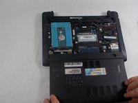 Remove the single Phillips #0 screw from the cover on the underside of the laptop.