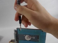 Insert an opening tool into the hole on the right side of the oval switch. Use the opening tool to slide the switch to the right.