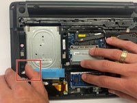 Place your finger on the left tab and press on it to loosen the hard drive.