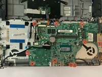 Remove the ten Phillips #0 screws that attach the motherboard to the keyboard.