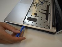 • Use a plastic opening tool to pry up the palm rest from the laptop body.