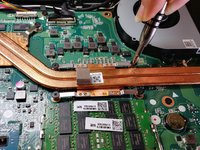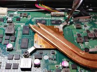 Use a Phillips #1 screwdriver to remove 6 black 10mm Phillips Head screws that connect the copper heat-sink to the motherboard.