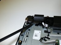 Taking note of the small speaker wire, gently lift only the left side of the bottom casing.