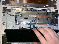 Use the pointed side of the spudger to disconnect the headphone jack cable from the motherboard and completely remove the bottom cover.