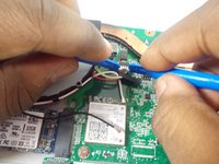 Disconnect the fan connector from the motherboard using two plastic opening tools.