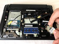 Lastly, disconnect the two white and black wire connectors attached to the wireless card.